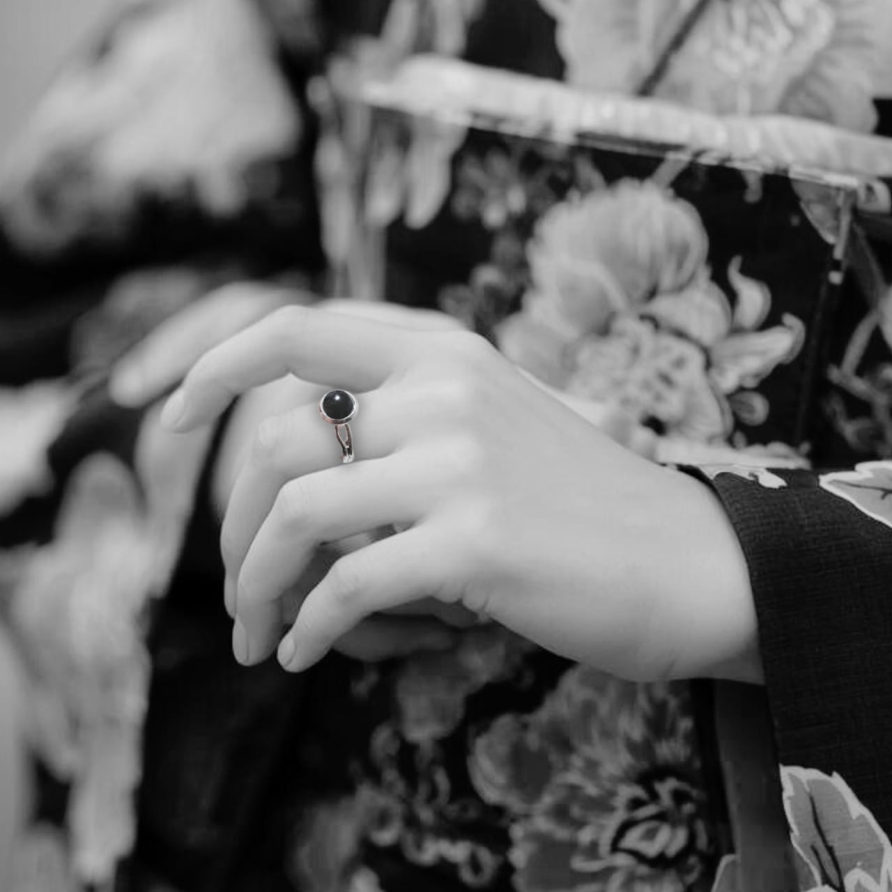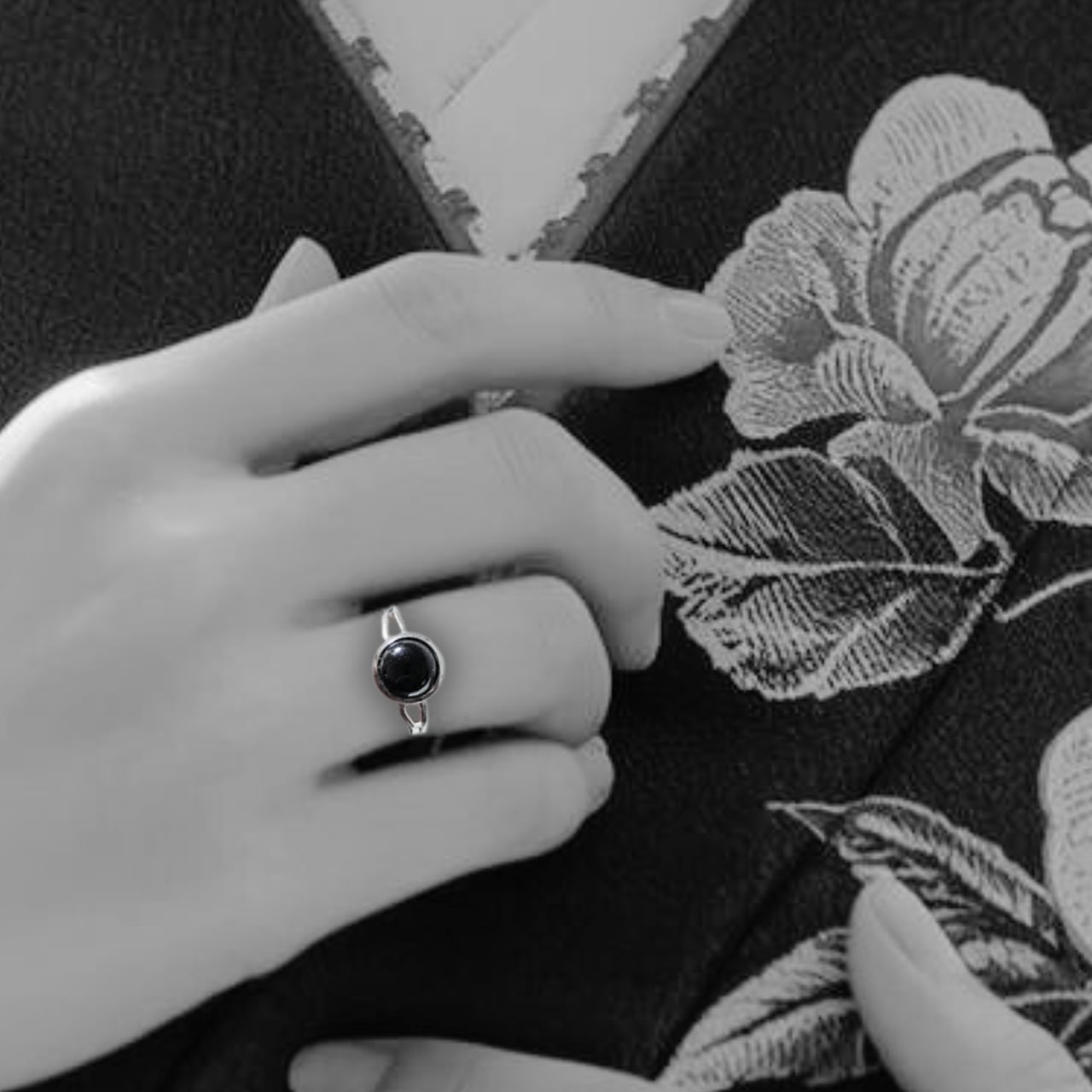 シンプルでありながら、清らかな黒が魅力的な美しいリングです。黒メノウは新たな可能性や幸福を象徴するとされるパワーストーンです。日常のファッションにエレガントな輝きを添え、特別なシーンや普段使いにもぴったりのアイテムとなります。