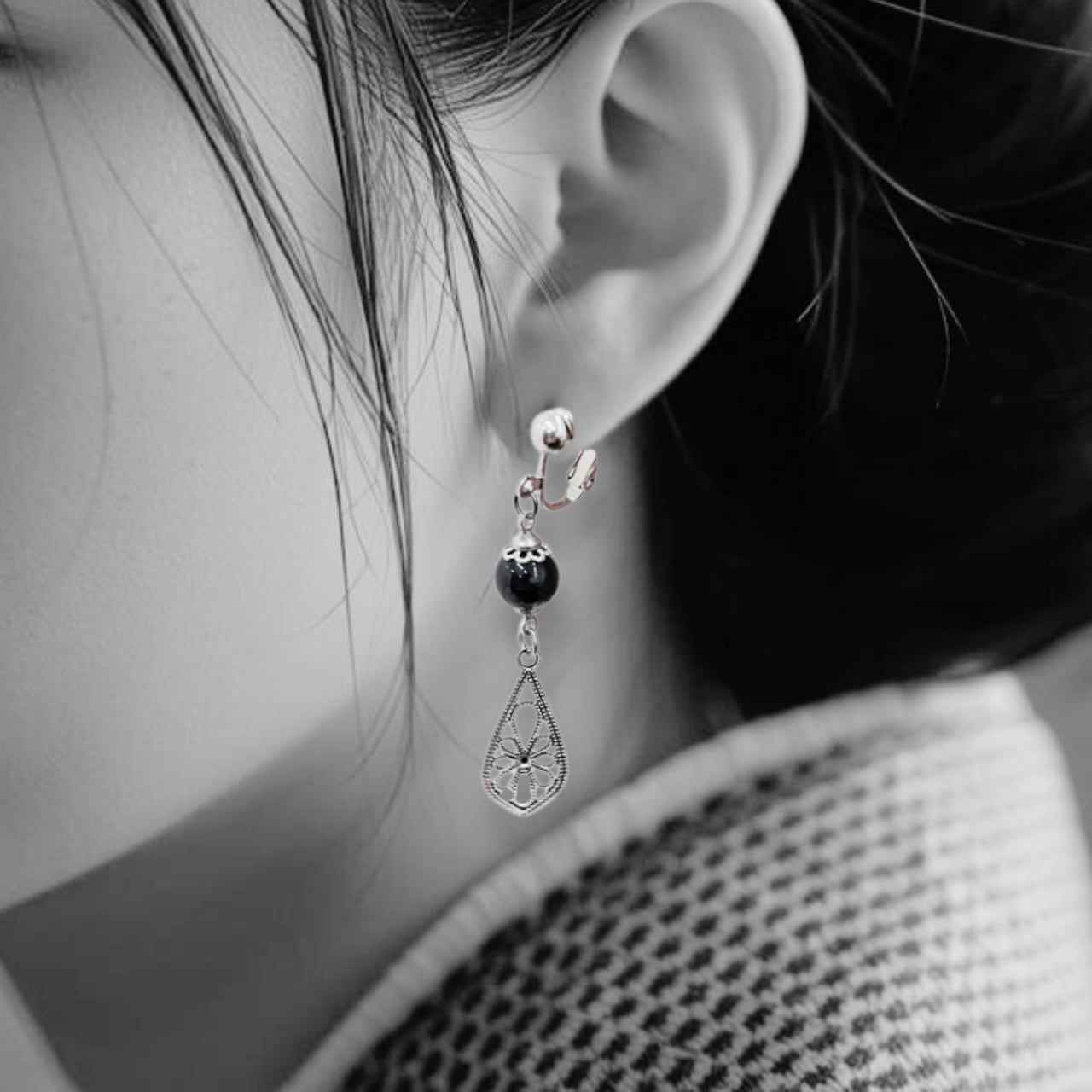 シンプルでありながら、その深い黒色の輝きが魅力的な黒メノウ石のイヤリングです。黒メノウは、強いエネルギーを象徴するとされ、自己防衛や安定感をもたらすと言われています。このイヤリングは、日常の装いに個性を加え、特別なシーンでも際立つアクセサリーとしてご活用いただけます。