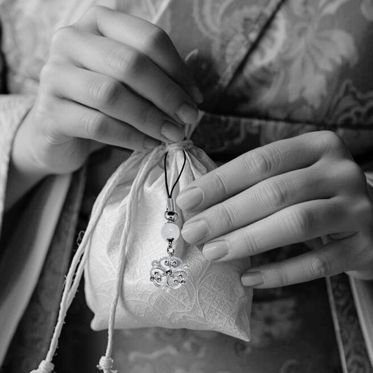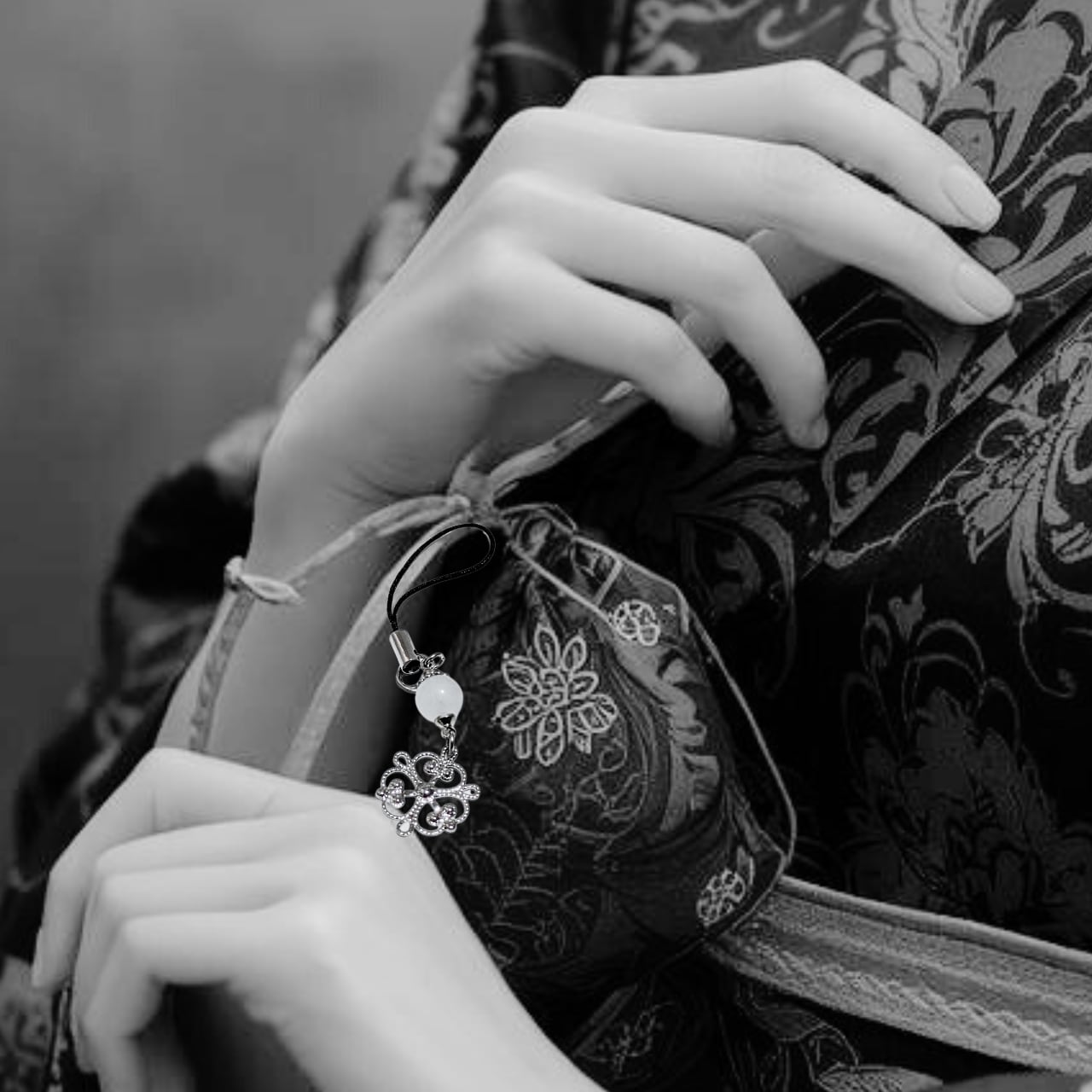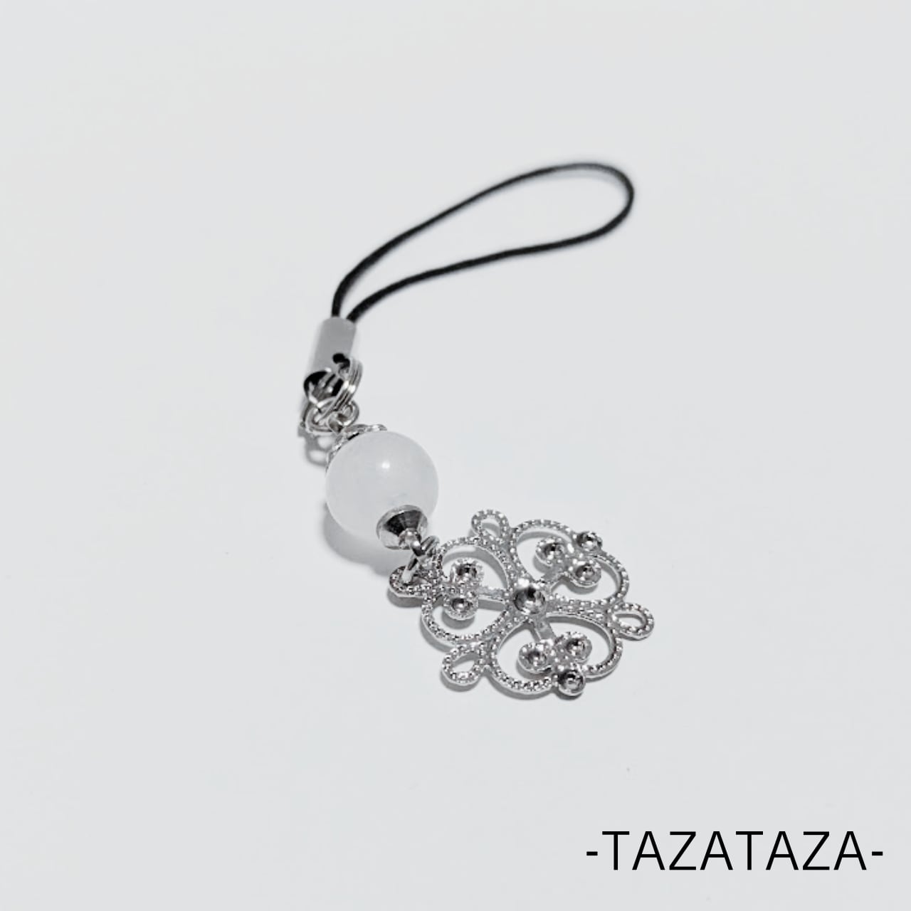 このストラップは、純白の美しさを持つ白メノウ石の8mm玉を使用しています。白メノウは清らかさや心の平和を象徴し、気持ちを落ち着ける力があるとされています。さりげないアクセントぴったりの存在感を持っています。