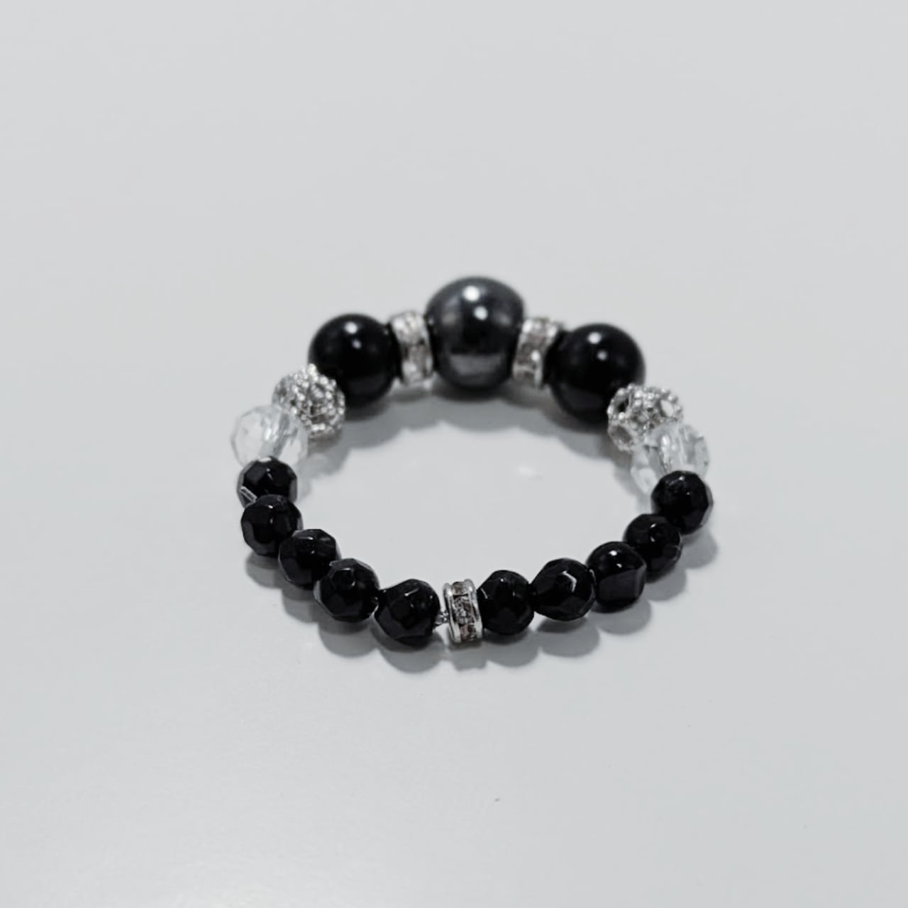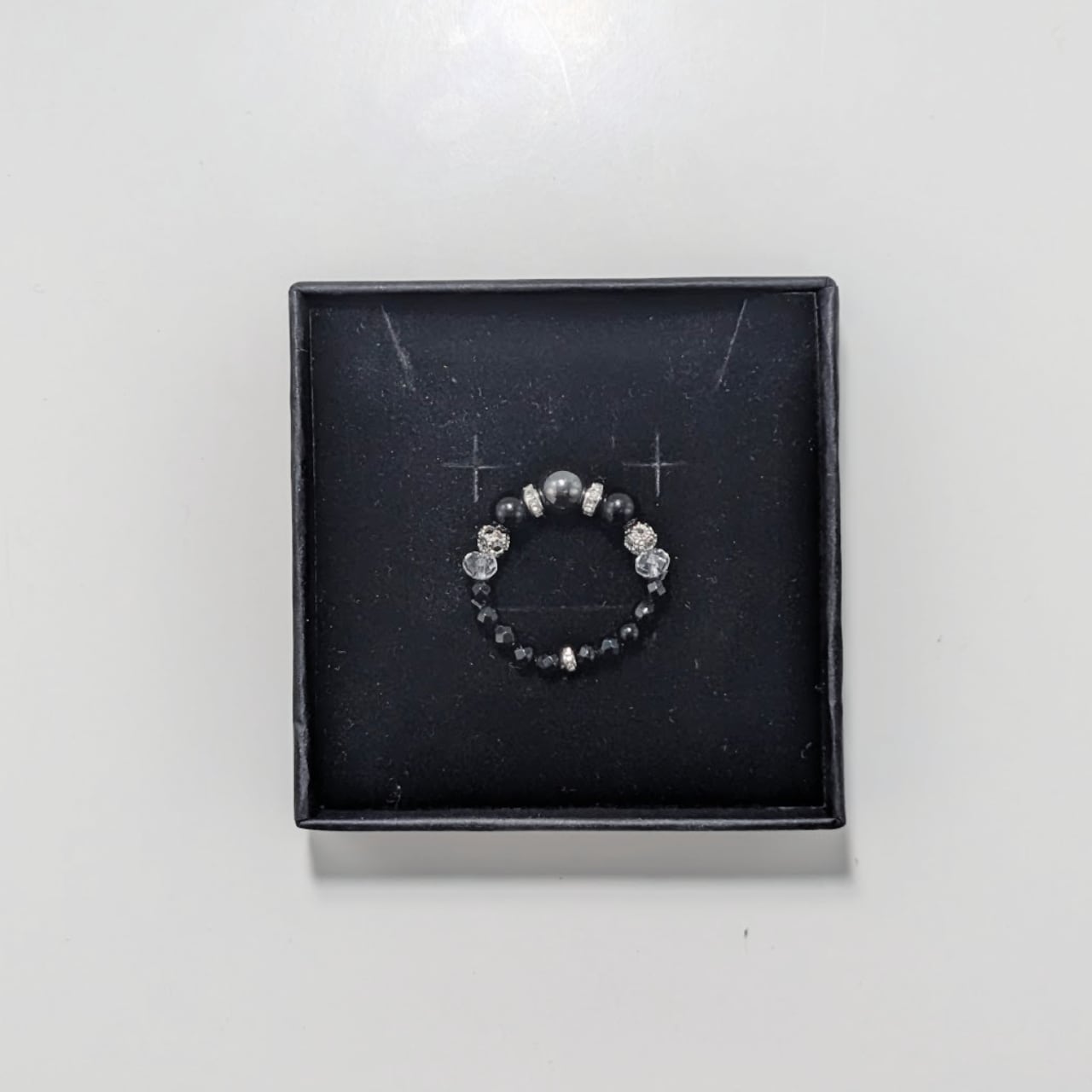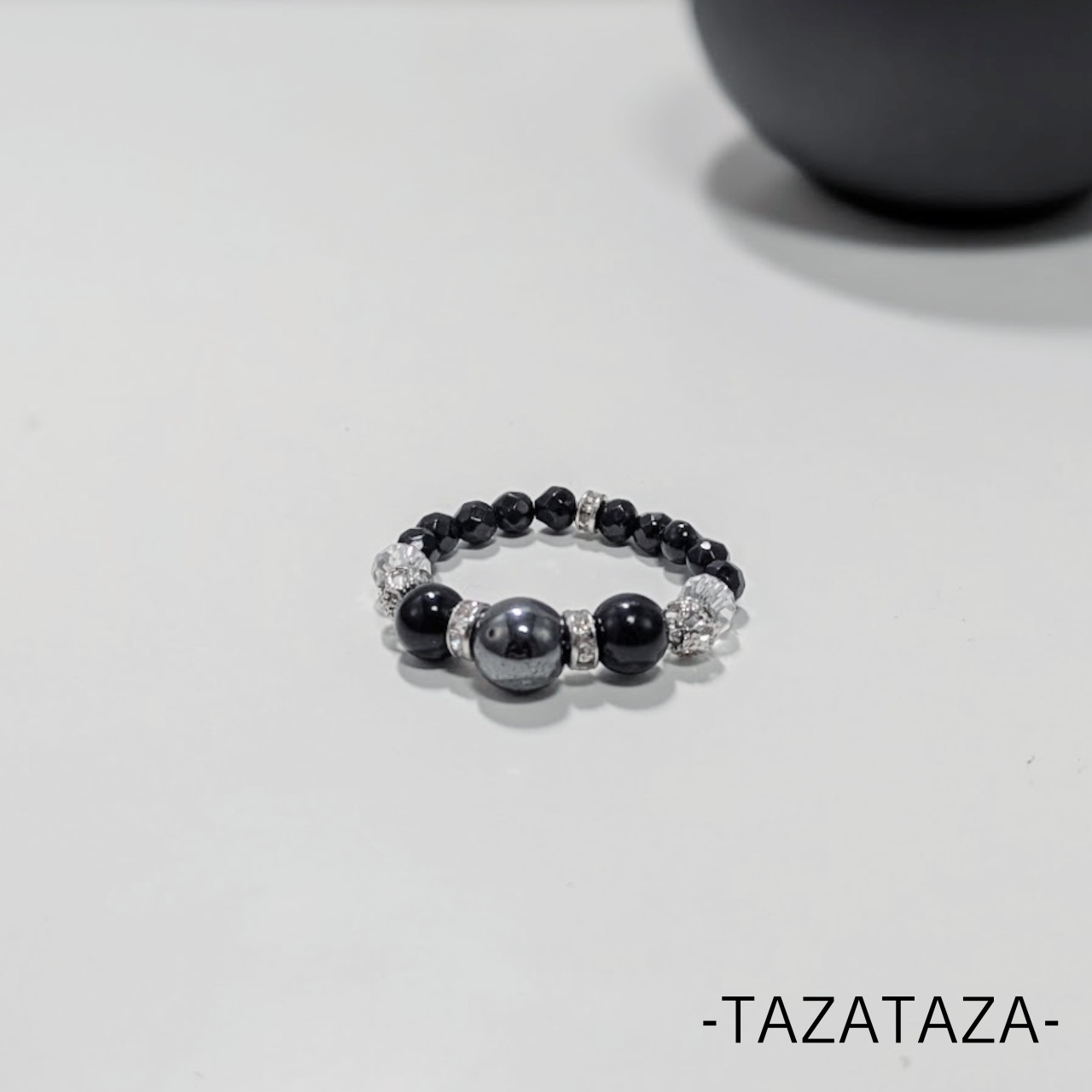 このリングは、神秘的で深い黒色を持つ黒メノウ石を使用しています。リングのサイズは約13号ですす。黒メノウは、心を落ち着け、エネルギーを整える力を持つとされ、身に着けることで心に安らぎを与えてくれます。